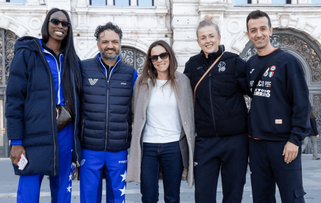 - Nel corso della cerimonia, la capitana Anna Danesi e il vicecapitano Simone Anzani hanno consegnato a Giorgia Meloni le maglie e il pallone autografati da tutti gli atleti