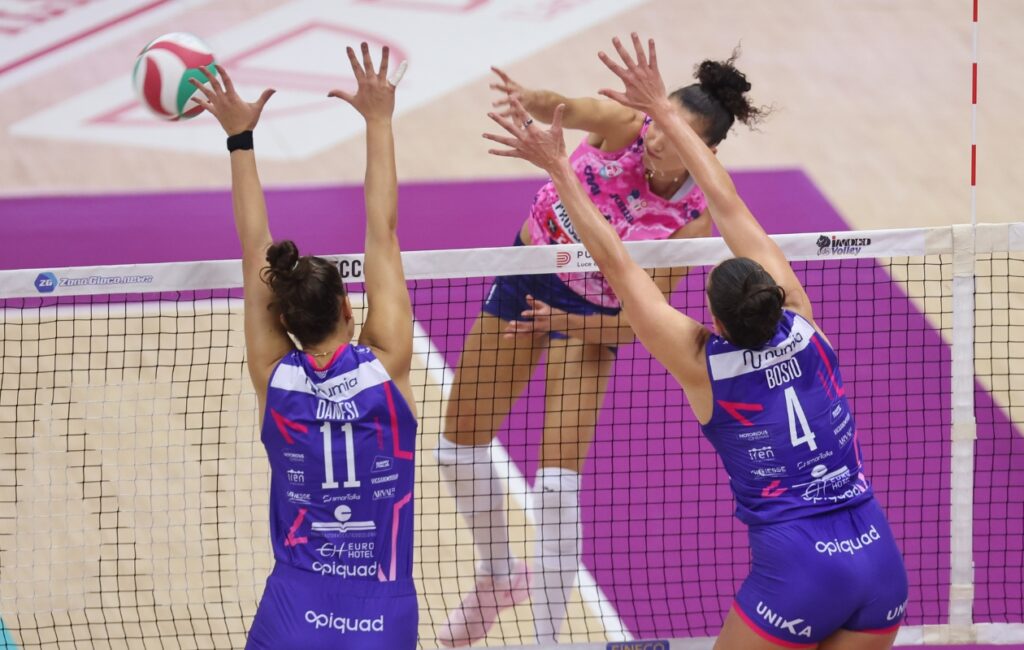 - La top scorer dell’incontro è Adji Ndoye, autrice di 16 punti (62%), ispirata anche l’opposta Viktoryia Siakretava con 15 punti (46%)