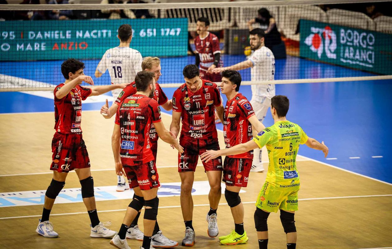La Lube Civitanova a Cisterna centra un successo sudato, arrivato solo al quinto set, con un tie-break dominato sì ma dopo aver sprecato due set di vantaggio. Due punti che proiettano la squadra di Medei a quota 37 in classifica consolidando la sesta posizione, mentre i laziali salgono a 15.
