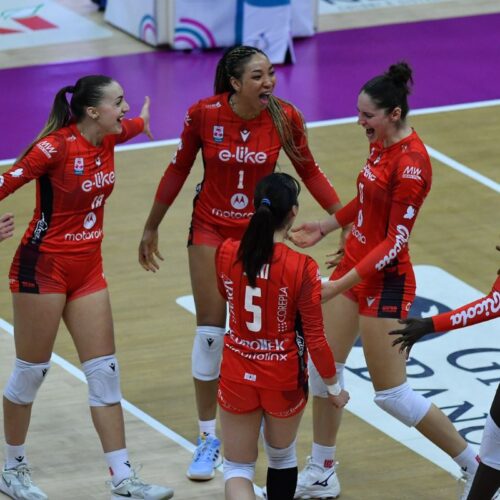 WASH4GREEN MONVISO VOLLEY: D’odorico 7, Sylves 11, Battistoni 1, Davyskiba 16, Akrari 3, Malual 7, Scialanca (L), Dodson 11, Moro, Bridi, Bussoli, Reknere (L), Siftar, Harbin. All. Marchiaro.