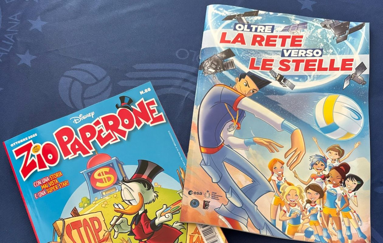 Cosa hanno in comune la pallavolo e lo spazio? Molto più di quanto si possa immaginare. Nasce proprio da questa domanda “Oltre la rete, verso le stelle”, il fumetto realizzato dalla Federazione Italiana Pallavolo in collaborazione con ESA (European Space Agency) e IRIDE, il programma satellitare europeo, che trovate in edicola con il numero di ottobre di Zio Paperone.