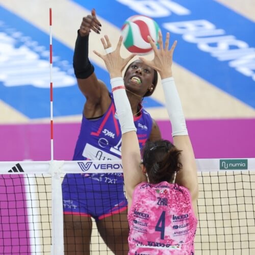 Terzo set che non inizia benissimo per i colori biancoblu: complice anche un po’ di stanchezza delle viaggianti, Cutrofiano tenta subito di fare la voce grossa, trovando aces e punti pesanti che sembrano indirizzare la contesa (9-3). Ma questa squadra ha la grinta, ha la pellaccia e non “muore” mai, così con pazienza, esprimendo una gran bella pallavolo, senza farsi prendere dall’ansia come accaduto in altre occasioni, costruisce la rimonta mattoncino dopo mattoncino, come dimostra il 3-7 di parziale che sembra riequilibrare il tutto (13-10). Dopo il nuovo allungo salentino (17-12) sale in cattedra il pacchetto di centrali, con il fondamentale del muro decisivo in questo frangente, ben tre della Dileo in pochi minuti, con l’ultimo dei quali che vale il 17-17. Nell’emozionante finale punto a punto però la Lavinia Group Volley Trani fa valere la sua esperienza e sul pari 23 riesce a siglare il doppio colpo che vale l’1-2.