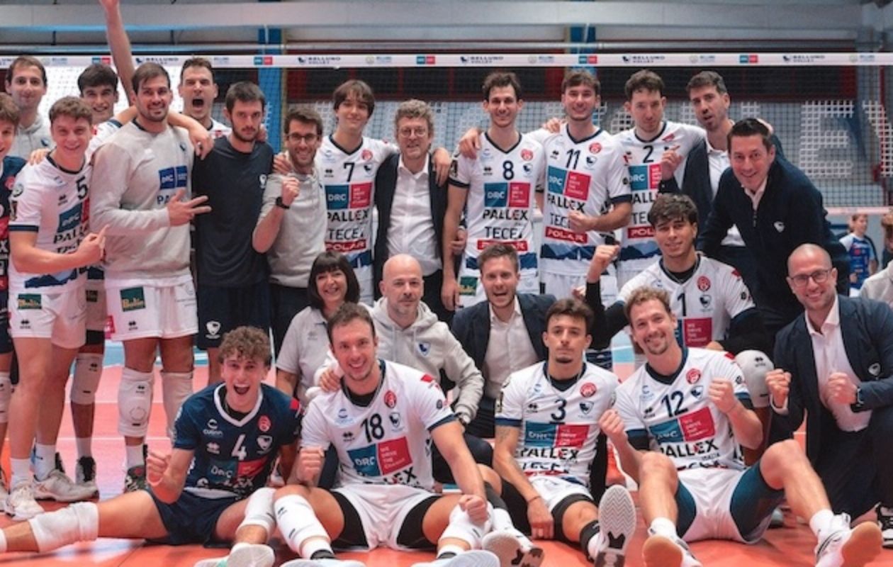 Vittoria sul campo. E sorpasso in classifica: il Belluno Volley si aggiudica lo scontro diretto con una squadra che, dopo due giornate, stazionava sul gradino più alto della graduatoria: Mantova. E lo fa al termine di una prova carica di orgoglio, ma anche, e soprattutto, di qualità e razionalità. Grazie a un muro a tratti invalicabile e capace di toccare un’infinità di palloni, i rinoceronti sono riusciti ad arginare l’attacco lombardo e a imporre la propria pallavolo. Senza tremare, dopo il tentativo di rimonta del Gabbiano. Decisivo Stefano Giannotti, con i suoi 22 punti. E non da meno Alexander Berger, in grado di sbrigare al meglio il solito “lavorone” in ricezione (66 per cento di positività per il più sollecitato in seconda linea) e di dare un determinante contributo sotto rete, come testimoniano i 19 punti con due muri e un ace. Ora, dall’alto del secondo posto in solitaria, il gruppo di Marzola osserverà un turno di riposo.