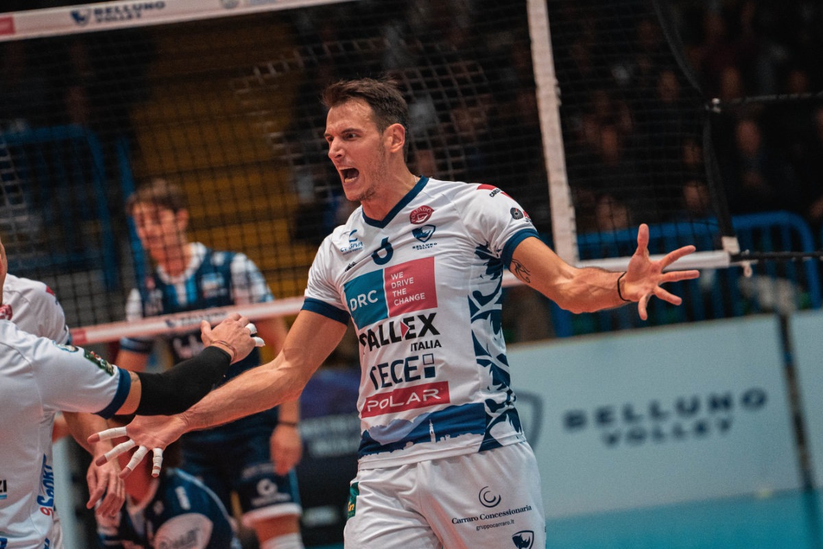 Terza vittoria consecutiva, imbattibilità casalinga mantenuta e prima affermazione stagionale in tre set: prosegue la marcia dei rinoceronti. Il Belluno Volley, infatti, si aggiudica il derby veneto contro la Personal Time San Donà di Piave, al termine di una prova solida e lineare, arricchita da buone percentuali in attacco, una coppia di centrali efficacissima come quella formata da Basso e Mozzato (17 punti e 5 “Monster Block” in tandem), un buon rendimento al servizio (4 ace a fronte di soli 6 errori) e un muro granitico. Prova che rafforza le sicurezze già acquisite negli scontri diretti con Mantova e Reggio Emilia. E permette ai ragazzi di coach Marzola di agguantare il secondo posto, a braccetto con la stessa Mantova e San Giustino. Ma, rispetto agli altri due sestetti che occupano la piazza d’onore, Marsili e compagni hanno una gara in meno. QUI tutti i risultati del weekend e la classifica di A3.