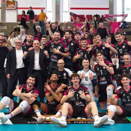 Sul palco, con il presidente rossoblù Nicola Caloni, anche il vice Angelo Agnelli che ha voluto omaggiare il “padrone di casa” con la maglia di Marco Pierotti: un gesto significativo che ci si augura possa diventare il miglior viatico per la stagione alle porte. I bergamaschi, infatti, domenica alle 18 ospiteranno Lagonegro al Palasport.