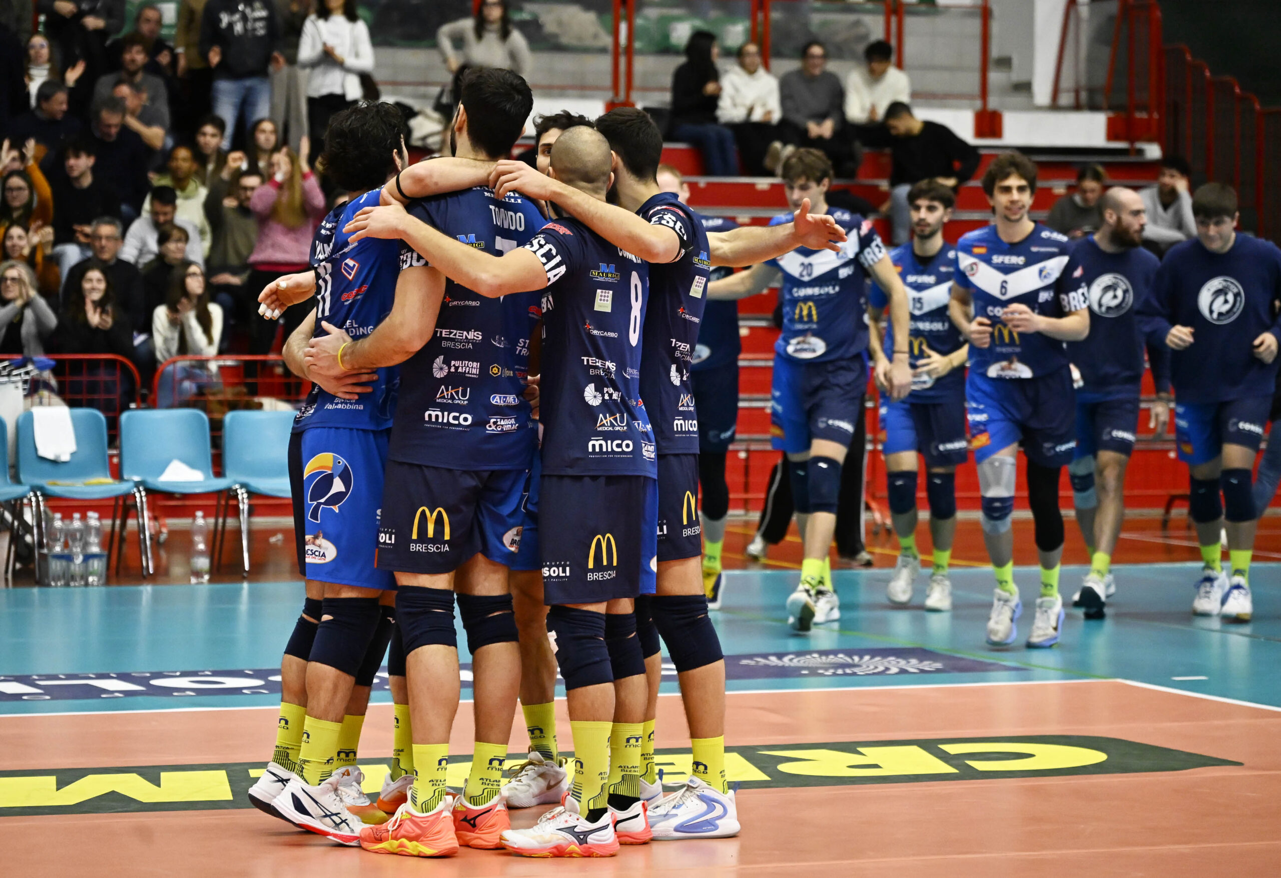 La Consoli intrepreta bene il match e, dopo un primo set nel segno di Manuele Lucconi –11 punti sui 18 totali – nel secondo è tutto l’attacco bresciano a funzionare, con il 71% di positività e maggiore equilibrio tra le bocche di fuoco servite che mettono a referto a fine gara anche 8 ace e 6 muri. La battuta è una spina nel fianco per la seconda linea campana, pur priva del libero titolare, e la trama del gioco è tessuta dalle mani dei tucani, che regolano Sorrento davanti a mille tifosi in festa.