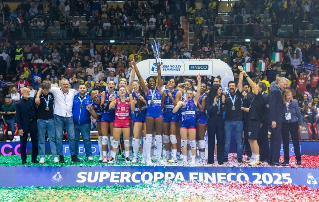 L’egemonia dell’Imoco Conegliano è spezzata, Milano vince al tiebreak la Supercoppa 2025. Per la Numia Vero Volley si tratta del primo trofeo di Serie A della sua storia, trofeo alzato subito da Egonu nella sua nuova veste di capitano. 25-18, 22-25, 20-25, 25-13, 12-15 i parziali del match davanti ai 7mila del PalaTrieste.