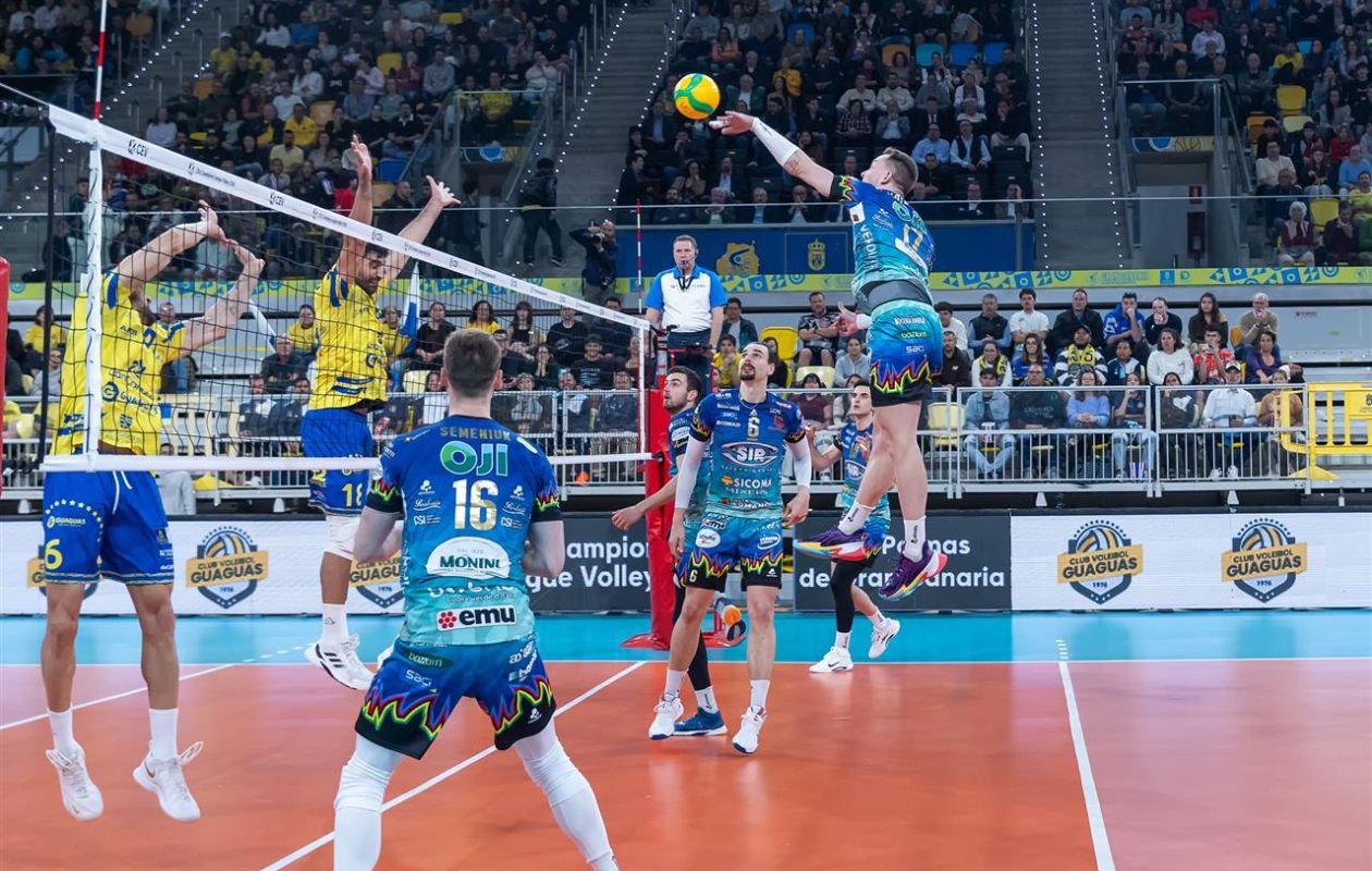 Esattamente come era accaduto nella Pool, il viaggio alle Canarie della Sir Sicoma Monini Perugia per la sfida d’andata dei quarti di finale di Champions tutto è stato fuorché una allegra vacanza. Avanti due set a zero, gli umbri hanno subito il ritorno feroce del Guaguas, preso per mano da Juantorena (14 punti), Wallison (20) e il mancino Spencer (15). Al decisivo quinto set il colpo di reni (5-9, 13-14, 13-15) che ha spianato la strada agli umbri verso il successo. Ben Tara top scorer con 28 punti seguito da Plotnytskyi (20), Russo (14) e Semeniuk (Mvp con 13 punti e il 68% in ricezione).