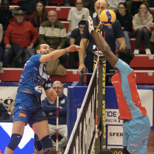 Secondo set – Grande equilibrio fino al 7-6 quando Nemeth e Gray con due muri su Gardini e Nervini in pipe ottengono un primo strappo a 10-6. Al rientro dal time-out di Giovi, Gray e Dervisaj in attacco e Van Aalen con un ace allungano il filotto biancoblù (13-6). Intanto entrano per mezza rotazione Turlà e Williams. E’ proprio quest’ultima a realizzare il 13-7. Nel prosieguo il set resta saldamente in mano alle ragazze di Negro che raggiungono il +11 sul 19-8 (Cekulev), per imporsi 25-14 alla prima palla set con Dervisaj.