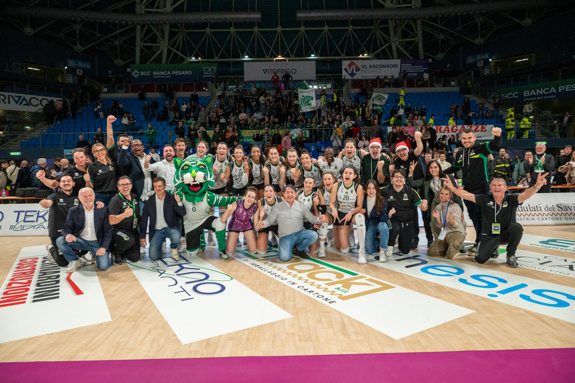 MEGABOX OND. SAVIO VALLEFOGLIA: Giovannini 6, Butigan 9, Bartolucci 2, Omoruyi 23, Candi 8, Bici 23, De Bortoli (L), Ungureanu 3, Stoyanova, Feduzzi, Thokbuom (L), Mitkova, Laza’ro Castellanos, Carletti. All. Pistola. NUMIA VERO VOLLEY MILANO: Lanier 16, Danesi 13, Egonu 26, Piva 7, Kurtagic 5, Bosio 1, Fersino (L), Pietrini, Modesti, Cagnin, Gelin (L), Sartori, Miner. All. Lavarini.