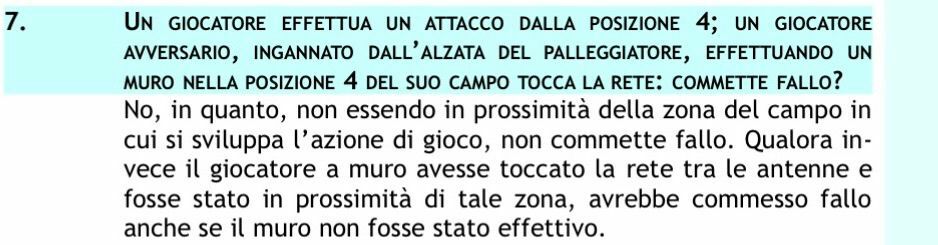 Se quella casistica di cui sopra, per quanto inverosimile, la dobbiamo prendere alla lettera vuol dire che un giocatore posizionato dalla parte opposta della rete rispetto a dove sta viaggiando la palla può tirare giù la rete, come faceva De Giorgi ai suoi tempi per intenderci, lo ricordiamo col sorriso, e non essere sanzionato perché lontano dalla palla? Capite bene l’assurdità della zona grigia che generano certe regole, con le loro casistiche scritte anche peggio?