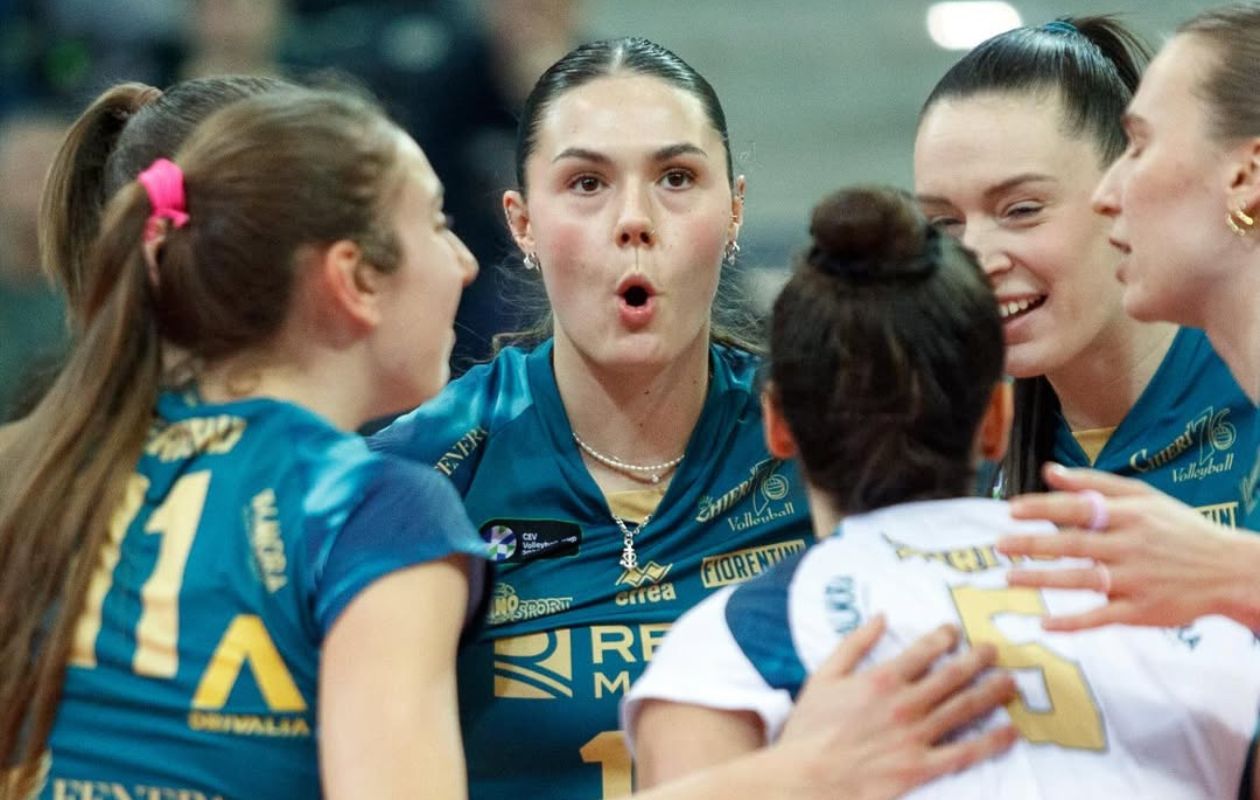 Quarto set – Si riparte con un muro di Gray (0-1). Chieri ha il controllo della situazione e tutto fila liscio fin quando sul 5-9 proprio Gray appoggia male un piede, cade a terra e deve lasciare il campo in barella. Entra Alberti. Con un ritmo molto regolare le biancoblù mantengono sempre un discreto vantaggio arrivando a 17-23 con un muro di Alberti su Damaske. Nel finale Lodz riapre la partita grazie al turno di servizio di Grabka risalendo al 23-23 con Lelonkiewicz. Nervini trova il pesantissimo punto del 23-24. Storck pareggia 24-24 con un mani out. Seconda palla match chierese grazie all’errore in battuta di Damaske, quindi l’errore sotto rete di Buterez fa scendere i titolo di coda sul 24-26.