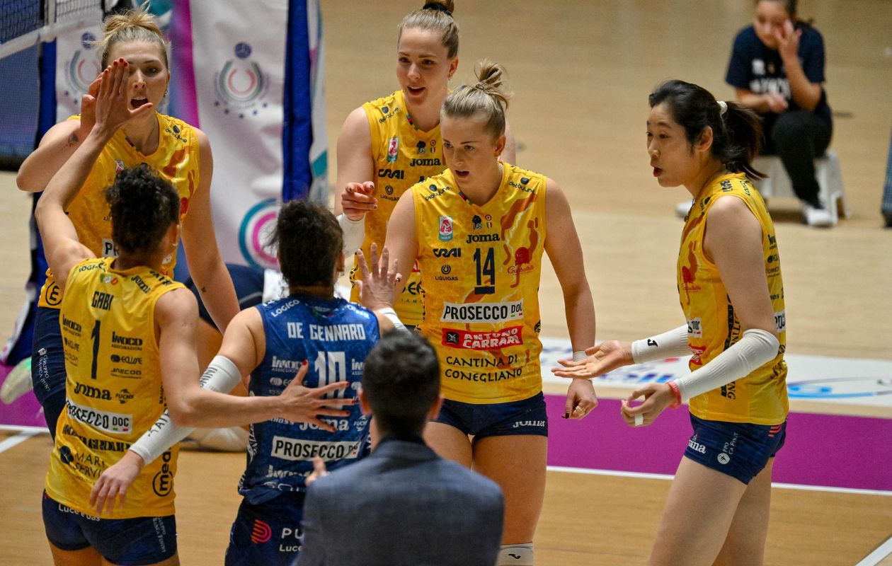 Prosecco DOC A. Carraro Imoco Conegliano: Gabi 17, Zhu 19, Scognamillo, Ewert, De Gennaro, Haak 23, Munarini ne, Wolosz 1, Adigwe 3 Daalderop, Chirichella 3, Fahr 6, Orso ne, Sillah 1. All. Santarelli