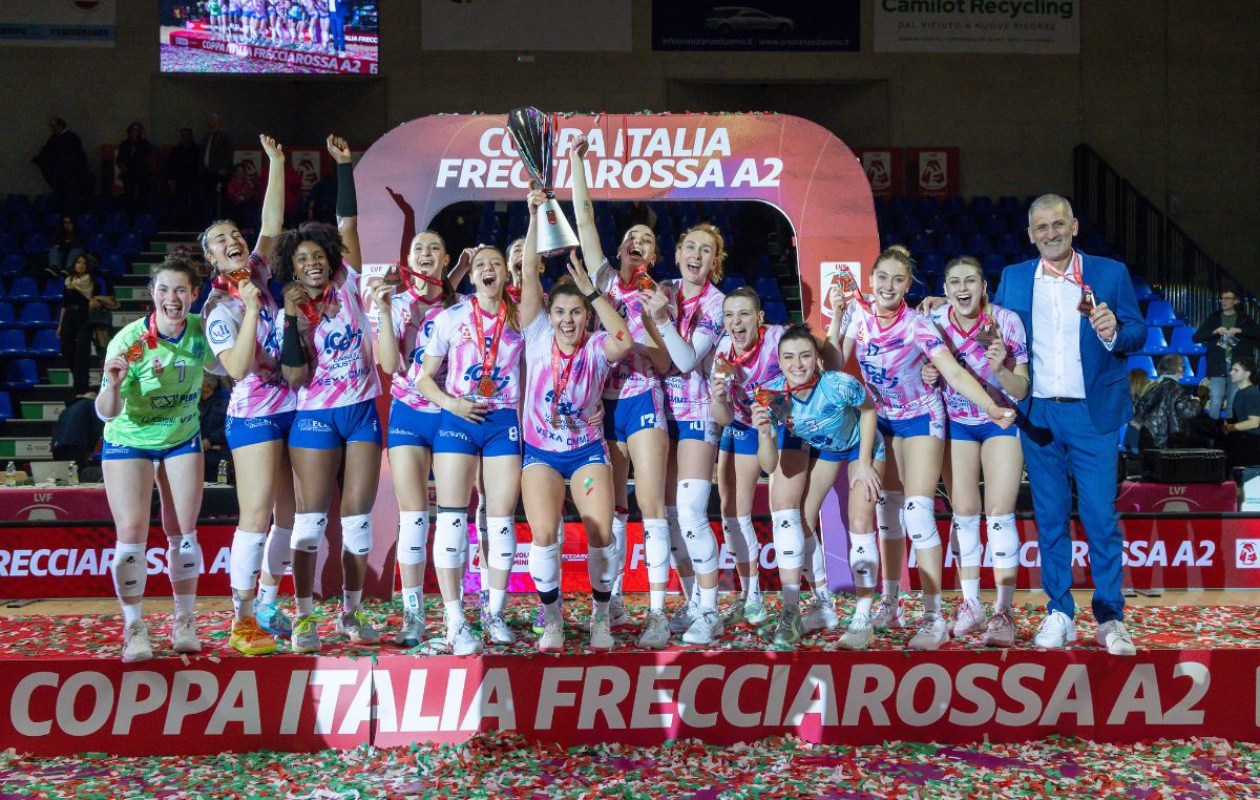 La C.B.L. Costa Volpino è la ventinovesima vincitrice della Coppa Italia Frecciarossa A2. Dopo una partita combattutissima, una delle più belle degli ultimi anni per una finale del campionato cadetto, le ragazze di coach Cominetti hanno espugnato il Palazzetto di Latisana superando in quattro set una coriacea Cda Volley Talmassons FVG, facendo esplodere di gioia i 700 tifosi accorsi in Friuli nel sold-out degli oltre 1800 presenti.