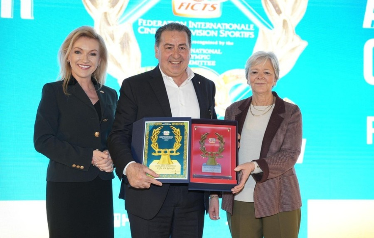 La Guirlande D’Honneur è la più alta onorificenza della FICTS (Federation International Cinema Television Sportifs), considerata l’Oscar della TV e del cinema sportivo. Insieme a Fefè sono stati premiati anche Francesco Moser, icona del ciclismo italiano e internazionale, e Spyros Capralos, membro CIO e olimpionico di pallanuoto.