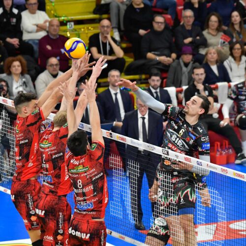 Nei due confronti diretti in campionato, poi, entrambi vinti dai Block Devils, Giannelli ha mandato in doppia cifra 5 dei suoi terminali d’attacco nella gara d’andata (55% di squadra in attacco) e altri 3 in quella di ritorno (64% di squadra). Per Boninfante, invece, 3 giocatori in doppia cifra nella prima sfida (43% di squadra) e il solo Nikolov nella seconda (46% di squadra).