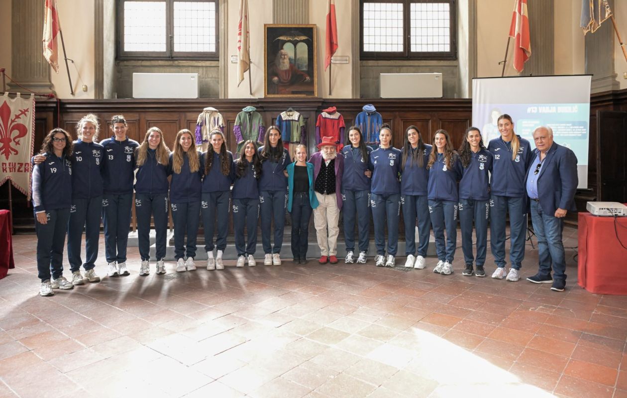 A cinque giorni dall’inizio del campionato, che prenderà il via lunedì alle 20.30 con la sfida casalinga contro Chieri, Il Bisonte Firenze si è presentato ufficialmente oggi alla città, ai tifosi, alle istituzioni e alla stampa, nella splendida cornice del Salone Brunelleschi nel Palagio di Parte Guelfa a Firenze, la casa del Calcio Storico Fiorentino. A fare gli onori di casa l’Assessora allo Sport, alle Politiche Giovanili e alle Tradizioni Popolari del Comune di Firenze, Letizia Perini, insieme al presidente Elio Sità e al patron Wanny Di Filippo, coppia da ormai più di vent’anni al timone dell’Azzurra Volley, che lo scorso 22 febbraio ha festeggiato il cinquantesimo anniversario della fondazione, avvenuta nel 1975: di fronte a loro le quattordici giocatrici della prima squadra, lo staff tecnico e dirigenziale e i rappresentanti degli sponsor e dei partner che sostengono il club – Il Bisonte, Banca Generali Private, Menicon Soleko, Joma Sport, Curtiba, La Nazione, Villa Donatello, Sixtus Italia, Sorriso Ricevimenti, Tecnosolar Film e Vivaticket – oltre al delegato provinciale del Coni Firenze Gianni Taccetti.