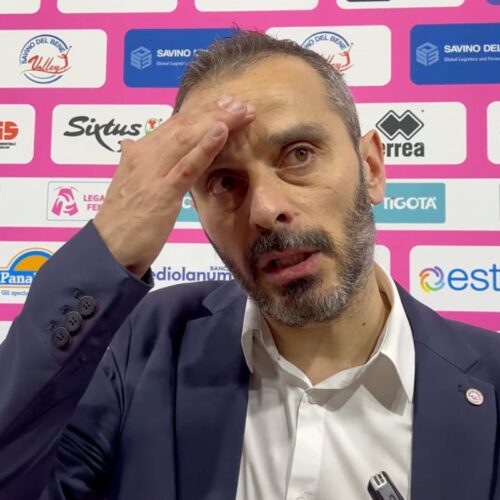 Nel primo set la GoldenPlast parte forte con un buon impatto nei fondamentali (3-11). Bella reazione dei padroni di casa, che trovano sponde vincenti e limano il gap (9-13). Dopo una lieve flessione, i biancazzurri tornano a farsi sentire con Di Silvestre al servizio, per poi allungare con Paoletti e Maletto (11-20). A chiudere i conti è l’attacco targato Di Silvestre (16-25).