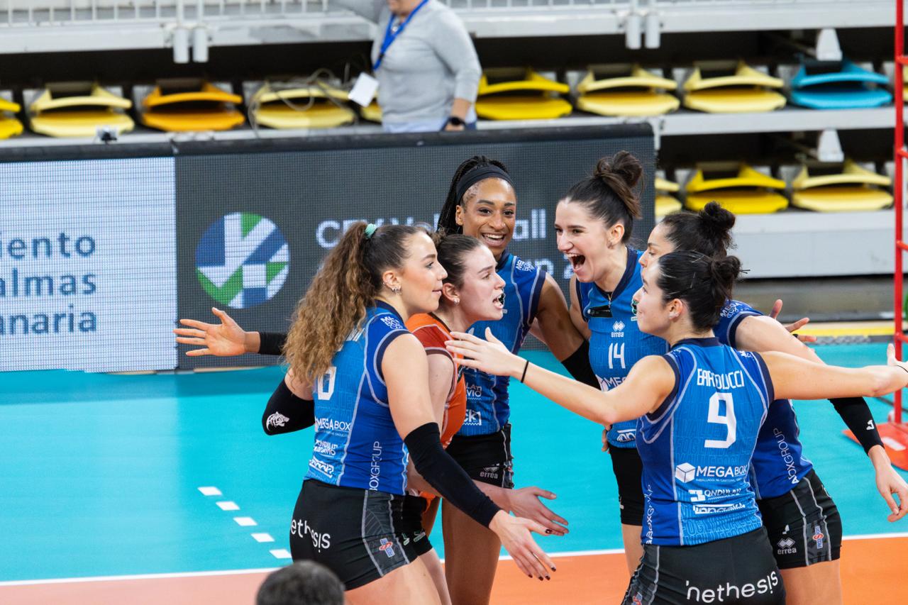 Esce dalla Gran Canaria Arena di Las Palmas con una preziosa e meritata vittoria in tre set la Megabox Ondulati del Savio Vallefoglia, che inizia nel migliore dei modi i Quarti di finale di Challenge Cup battendo le spagnole dell’Emalsa Gran Canaria. Ora alle tigri per il passaggio alle semifinali basterebbe vincere due set nella partita casalinga del prossimo mercoledì, 4 febbraio, al PalaMegabox. Bici è stata la MVP con 23 punti, il 50% in attacco e ben 5 muri, 3 anche i muri di Butigan, decisiva nello strappo finale del terzo set. Tra le padrone di casa la migliore è stata l’americana Brown, con 11 punti e il 53% in attacco.