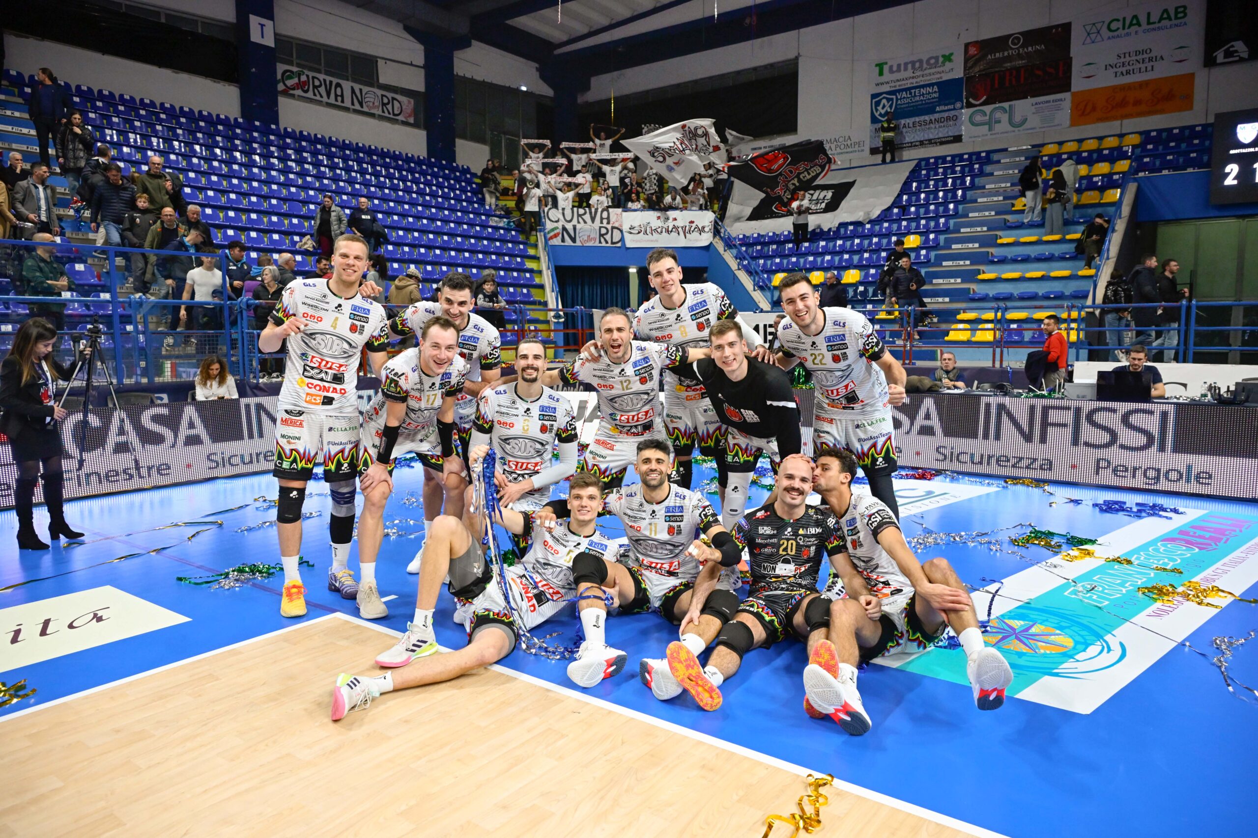 Il turno infrasettimanale che vede la Yuasa Battery ospitare la fortissima Sir Susa Scai Perugia si apre con un minuto di raccoglimento indetto dal CONI per la scomparsa del mito tennistico Nicola Pietrangeli, silenzio che si allunga anche per un intero set da parte della curva Ska. Cantano invece felici i sostenitori giunti dal capoluogo umbro, applausi per loro che in giorno feriale sono giunti nelle Marche in barba ad orari ed impegni lavorativi per seguire i propri beniamini. Scelta felice, perché alla resa dei conti è proprio la Sir a festeggiare, secondo pronostico ma anche con qualche goccia di sudore in più, dettata dalla resistenza caparbia di una Yuasa a tratti forse anche migliore di quella vista domenica a Modena.