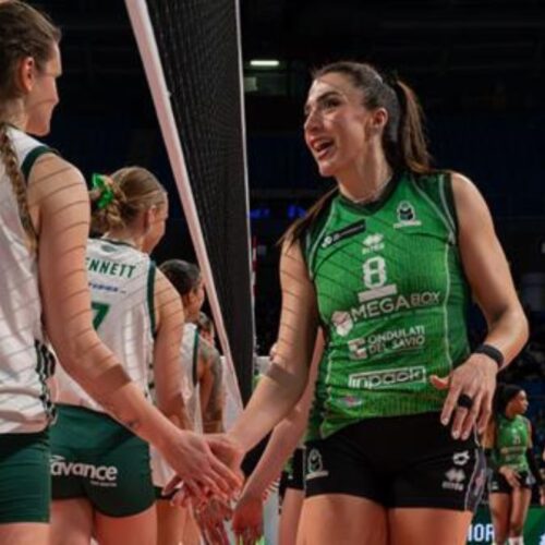 Al cardiopalmo il terzo set con le ospiti che hanno raggiunto anche un massimo vantaggio di sei punti 15-21 prima di una straordinaria rimonta delle biancoscudate grazie ai turni di battuta di Boffi e Bontorno.