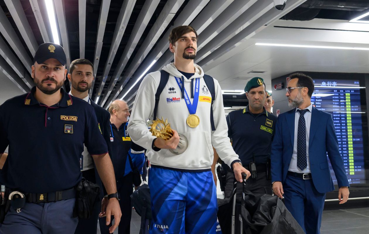 Alle 20:05 di questa sera la Nazionale maschile, guidata da Ferdinando De Giorgi, ha toccato il suolo della pista dell’Aeroporto di Roma Fiumicino “Leonardo Da Vinci” e ha ricevuto l’applauso all’interno dell’aeroporto e dei numerosi media presenti al terminal 3.