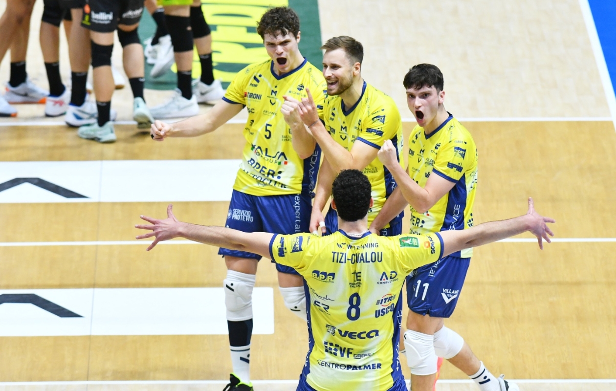Un riscatto innescato dalla una ricezione costante e da un attacco più pimpante (55%), con una distribuzione equilibrata dei palloni. L’avvio di quarto set è di marca emiliana, con Davyskiba in attacco, Sanguinetti al servizio e Tizi-Oualou che si mette in proprio (6-1). Il calo di tensione civitanovese impone cambi in serie a Medei, Nikolov compreso, ma la Lube non trova più il filo del gioco (13-3), sbandamento molto simile a quello andato in scena mercoledì in Brianza. L’ace di Mati suona come una sentenza (16-4). Con Nikolov di nuovo in campo e l’ace di Loeppky Civitanova prova a rientrare (18-8). I biancorossi incassano un rosso per proteste e cercano di limitare i danni nel finale, ma cedono 25-11 contro una squadra trascinata da 3.500 persone.