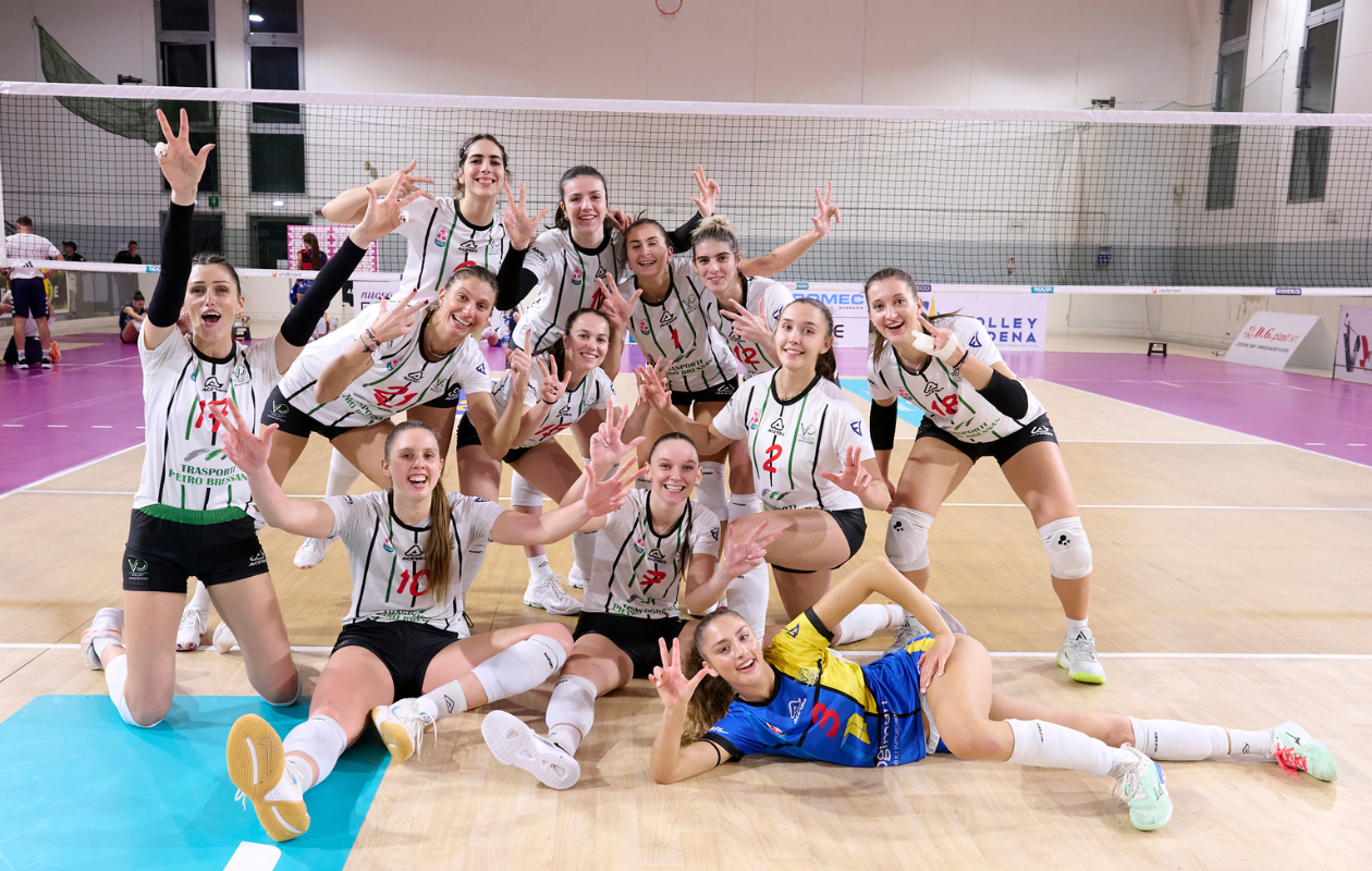 Seconda vittoria stagionale e primo successo pieno per la Trasporti Bressan Offanengo, che festeggia nel turno infrasettimanale odierno espugnando in quattro set il campo del Volley Modena e salendo così a quota 7 punti in classifica. La squadra di Giorgio Bolzoni ha saputo cambiare marcia uscendo alla distanza dopo una prima parte difficile; sotto 1-0 e 10-7, le neroverdi hanno spinto in battuta (fondamentale che ha fruttato 11 ace, dei quali 6 di Sara Bellia) e hanno saputo cambiare le sorti dell’incontro. Mvp, la giovane palleggiatrice di Offanengo Giorgia Compagnin (classe 2005), mentre il capitano Valentina Zago è stata la top scorer con 21 punti, tre in più della Bellia. In seconda linea, tanta solidità per Giada Di Mario (75% di ricezione positiva e molte difese), così come al centro con l’esperienza di Anna Caneva, approdata in doppia cifra (11 punti) anche grazie a 4 muri.