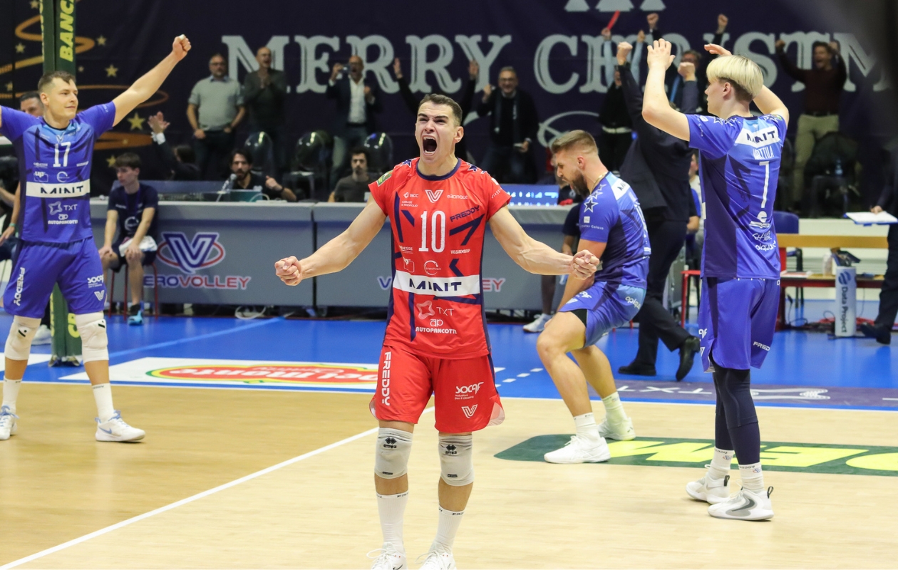 Sono servite due ore e mezza di partita alla Vero Volley Monza per avere la meglio sulla Yuasa Battery Grottazzolina. I ragazzi di coach Massimo Eccheli si impongono al tie-break dopo essere stati in svantaggio due set a zero (20-25; 30-32; 25-21; 25-19; 18-16) e conquistano due punti fondamentali che regalano l’accesso ai Quarti di Finale della Coppa Italia. Qui in basso il video della nostra intervista post gara al libero dei brianzoli Leonardo Scanferla.