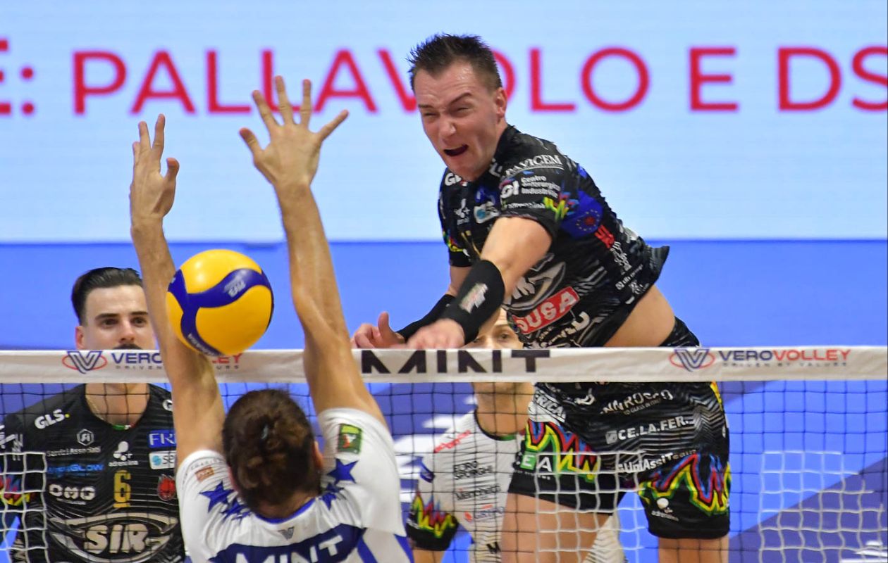Vero Volley, come detto, aggredisce subito il match con Zimmermann bravo a coinvolgere tutte le sue bocche di fuoco (5 punti per le bande Marttila e Atanasov, 4 per Padar, 3 di Beretta) e percentuali che rasentano la perfezione: 71% in attacco e 50% in ricezione. Incassato lo schiaffo, la Sir ne rifila uno ancora più forte nel parziale successivo attaccando con il 67% (contro il 39%) frutto di una distribuzione magistrale di sua Maestà Giannelli (6 punti per Loser e Plotnytskyi; 4 per Ben Tara, Solè e Ishikawa). Molto più equilibrato il terzo set, deciso alla fine nel finale da due soli palloni e altrettante scelte ‘acerbe’ del giovane Velichkov, sino a quel punto grande protagonista in campo con la sua sfrontatezza. Avanti due set a uno, nel quarto la Sir è brava a mettere distanza tra se e i brianzoli (9-13, 15-20) e poi amministrare sino al punto finale su errore al servizio di Larizza.