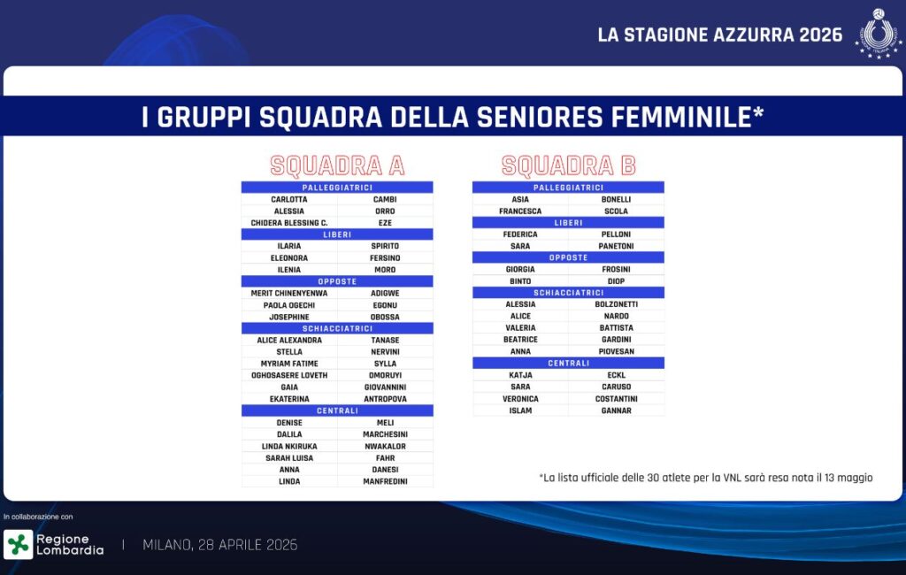 *La lista ufficiale delle 30 atlete per la VNL sarà resa nota il 13 maggio.