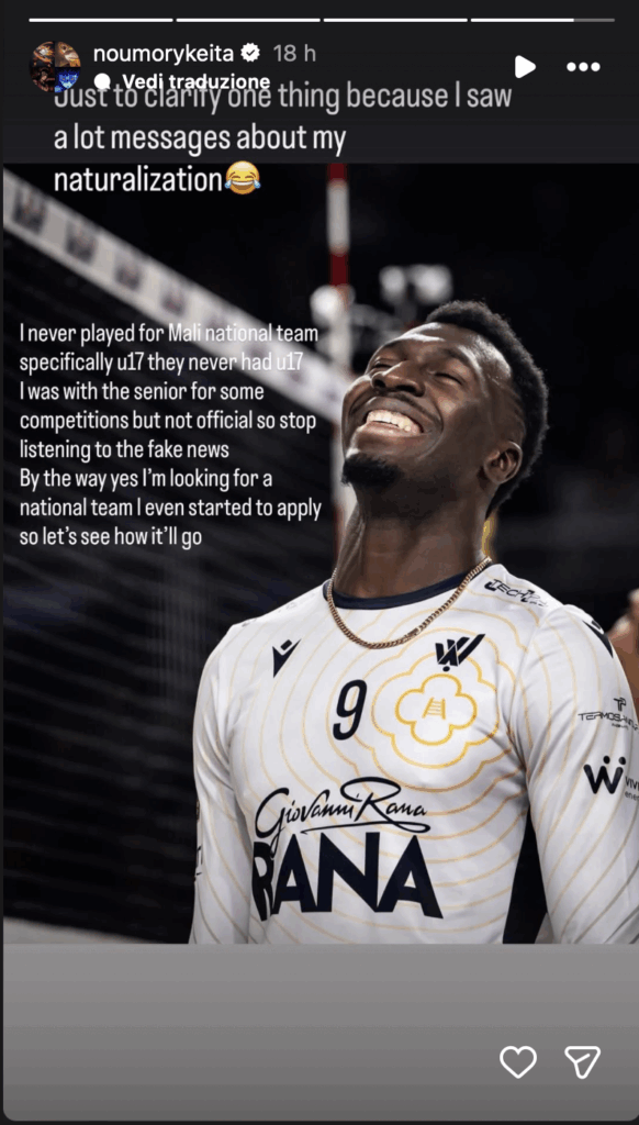Da quando Giuseppe Manfredi, presidente federale, ha parlato di Keita in un’intervista rilasciata al Corriere dello Sport lo scorso 13 dicembre, l’argomento è diventato subito virale sui social. Per molti la possibilità che il fuoriclasse maliano della Rana Verona possa vestire la maglia azzurra rappresenta una possibilità da non farsi scappare, altri invece storcono il naso.