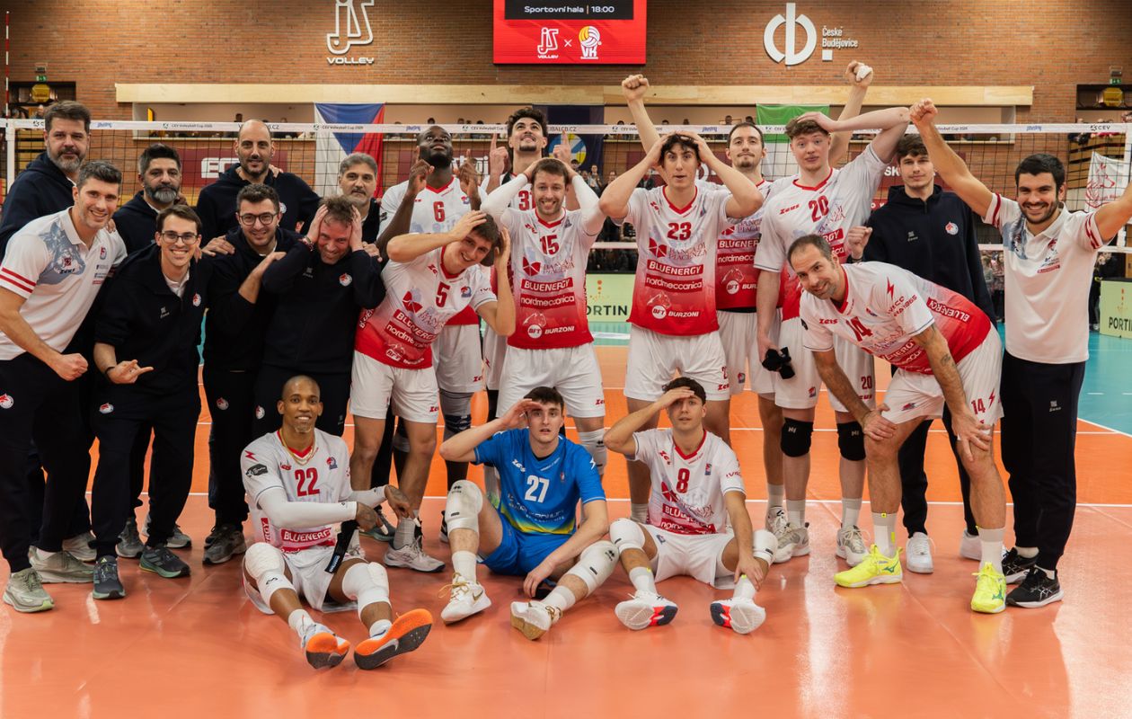 Gas Sales Bluenergy Volley Piacenza stacca il pass per gli Ottavi di Finale della Cev Volleyball Cup. Con tanto cuore. C’è voluto il Golden Set, nell’infuocato Sportovni Hala di Ceske Budejovice i biancorossi hanno perso 3-1 la gara ma poi nel Golde Set sono stati bravi ad annullare due match ball ai cechi e dopo essersene visto annullare, a sua volta, due hanno potuto festeggiare. Davanti a sei Lupi Biancorossi festanti in tribuna.