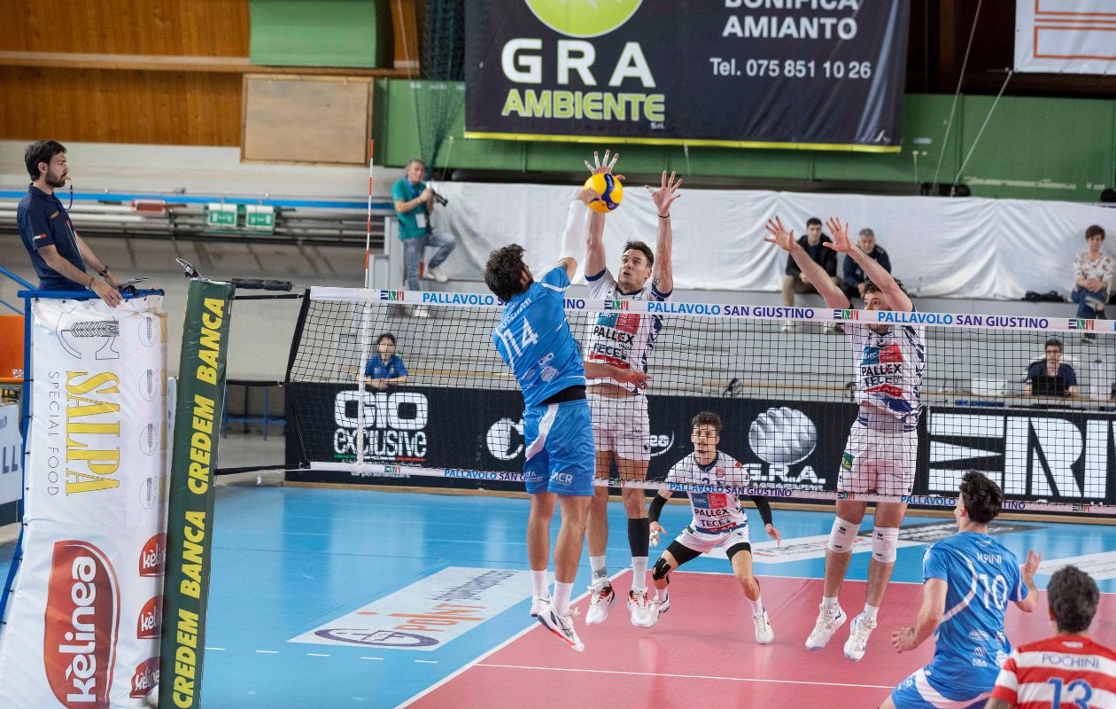 Nell’altra semifinale a trionfare è Altotevere, che recupera la partita al tie-break. All’ottavo tentativo totale, la ErmGroup riesce a sfatare il tabù Belluno e ad aggiudicarsi il primo round della semifinale playoff. La formazione di Bartolini ha dimostrato come il cambio di passo sia stato evidente in questi ultimi tempi, aggiudicandosi in rimonta il primo set e facendo suo anche il secondo. Terza frazione a meritato appannaggio dei veneti e quarta che ha lasciato l’amaro in bocca, se si pensa che l’Altotevere era partita con un netto 7-1 in suo favore. Battuta, muro e difesa i punti di forza iniziali dei padroni di casa, così come lo sono stati per i ragazzi di Mastrangelo nell’operazione di rimonta, poi al tie-break l’Altotevere ci ha messo testa e cuore per regalare una vittoria al folto pubblico del palasport.