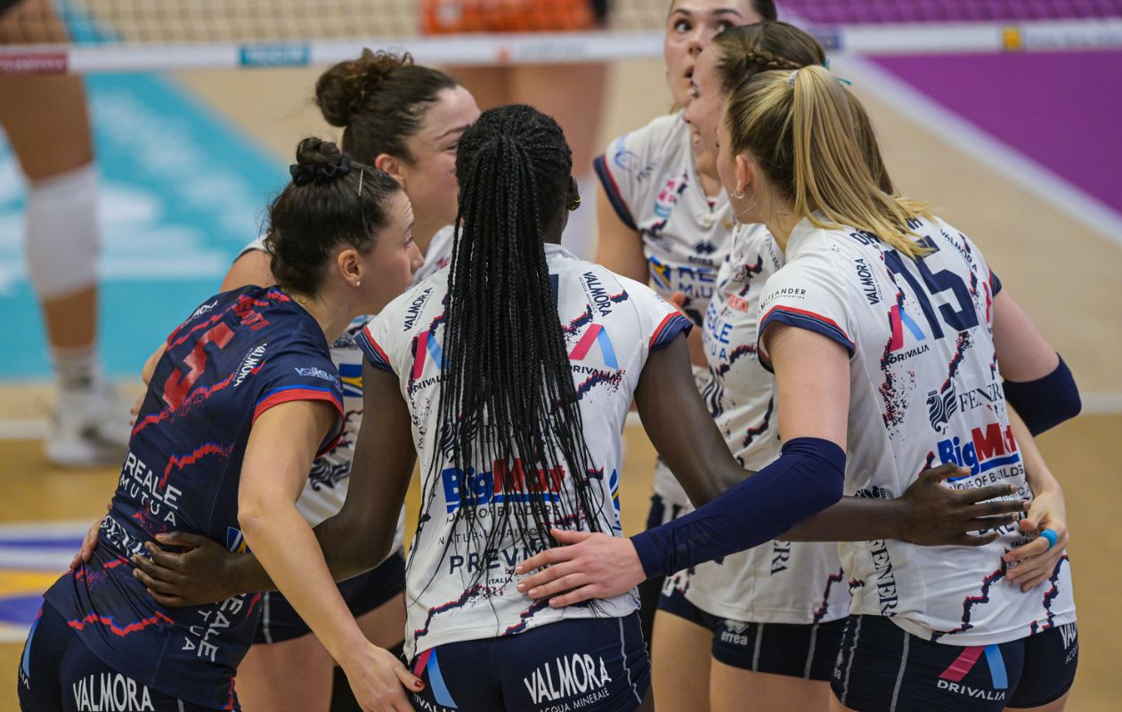 In vista della semifinale di ritorno di Coppa Cev con Dresda coach Negro lascia a riposo Nemeth, Nervini, Dervisaj e Alberti: le sostituiscono egregiamente Dambrink, Ferrarini, Degradi e Bah. Nel terzo set c’è spazio anche per Bonafede. Dall’altra parte della rete coach Lionetti non schiera Bonelli, Decortes e Clothier.