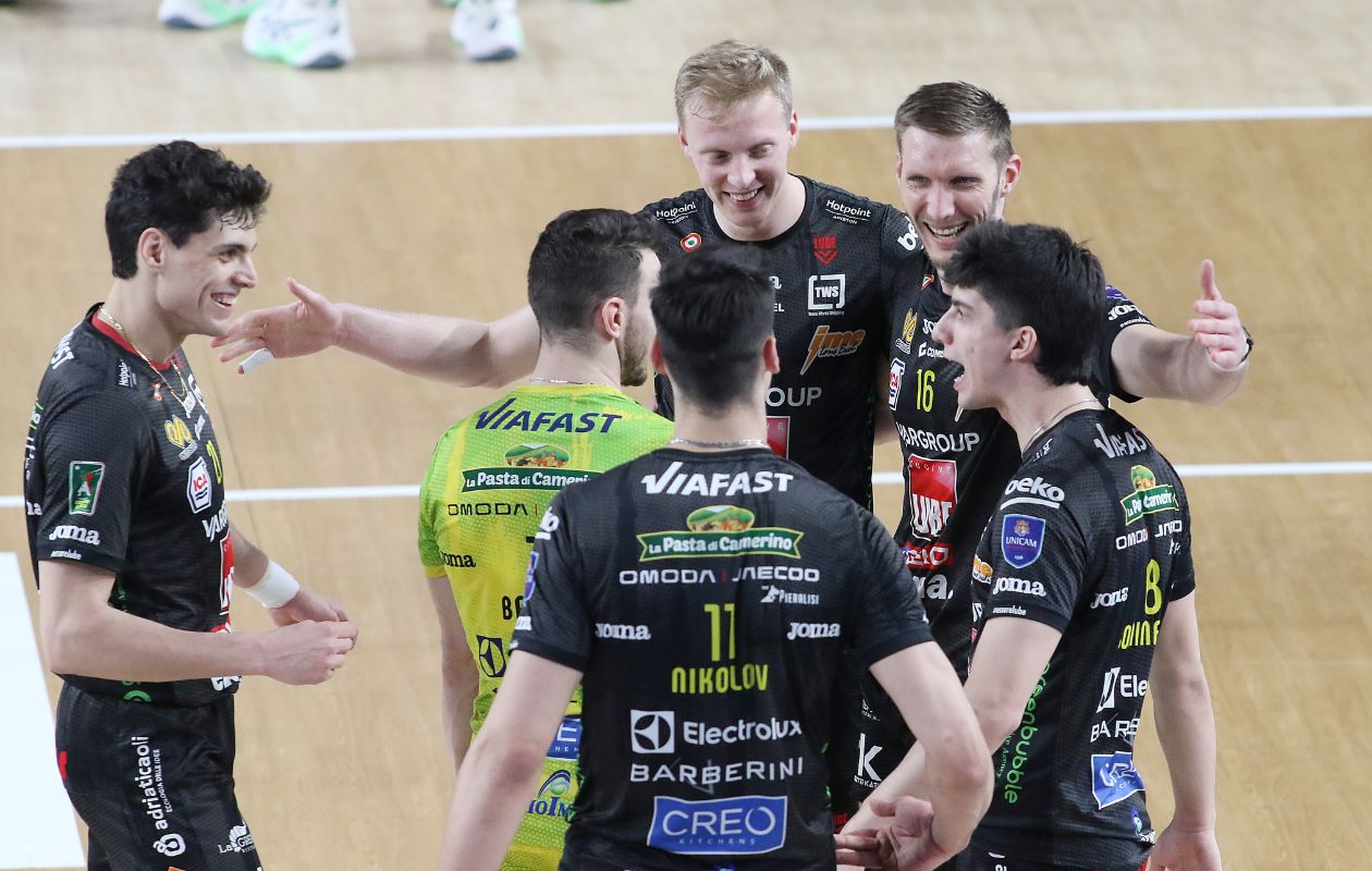 CIVITANOVA: Boninfante 4, Bottolo 13, D’Heer 4, Loeppky, Nikolov 19, Gargiulo 6, Orduna, Bisotto (L), Balaso (L), Hfaiedh ne, Kukartsev 6, Duflos-Rossi, Tenorio me, Podrascanin ne. All. Medei
