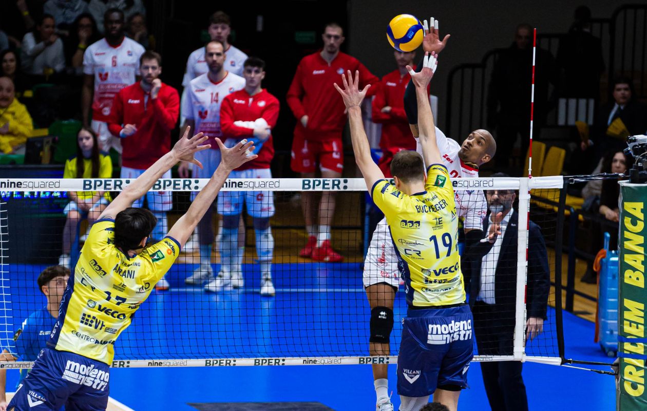 Domenica 29 marzo è in programma una Gara 5 mozzafiato (ore 18.00) nel PalaPanini tutto esaurito, con diretta Rai Sport, DAZN e VBTV. Al culmine di una settimana caratterizzata dalle coppe europee, la clessidra scorre verso la “bella” dei Quarti di Finale Play Off Credem Banca tra Valsa Group Modena e Gas Sales Bluenergy Piacenza. Simon e compagni, che mercoledì hanno domato Lubiana al tie-break nell’andata casalinga delle Semifinali di CEV Cup, sono chiamati a ricaricare subito le pile. Anche perché il derby della Via Emilia sta rispecchiando in pieno le aspettative, confermandosi il braccio di ferro più combattuto e interessante dei Quarti di Finale nei Play Off SuperLega Credem Banca. Nel turno successivo è già noto l’abbinamento tra Rana Verona e Cucine Lube Civitanova, mentre Sir Susa Scai Perugia è in attesa della sfidante. La vincente di una serie finora senza padroni raggiungerà i Block Devils: una vittoria interna per parte e due successi esterni per ciascuna squadra in una serie serrata in cui solo Gara 3 non è finita al tie-break. Dopo la maratona di marca modenese al via, è arrivato il sorpasso piacentino nei successivi due match, poi i canarini hanno ristabilito la parità vincendo il quarto atto. Il match del “Tempio” decreterà l’ultima semifinalista e, di conseguenza, la formazione che parteciperà successivamente ai Play Off 5° Posto.