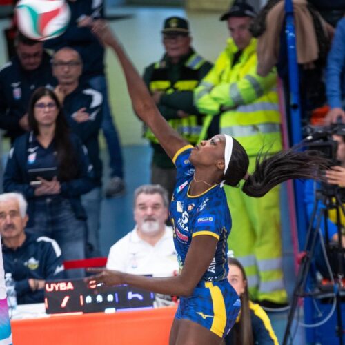 Starting players – Nessuna novità nelle formazioni rispetto a quanto preventivato alla vigilia: il tecnico biancorosso si affida al 6+1 di partenza da inizio campionato. Sperotto in regia opposto a Cantagalli, Tognoni e Arasomwan al centro, Raffaelli e Mastracci in banda, capitan Fortunato libero. Dalla parte di Porto Viro, coach Moretti inizia con la diagonale Zonta-Pinali, Erati ed Eccher centrali, Magliano e Ferreira Silva in posto quattro, Morgese a dirigere le operazioni difensive.