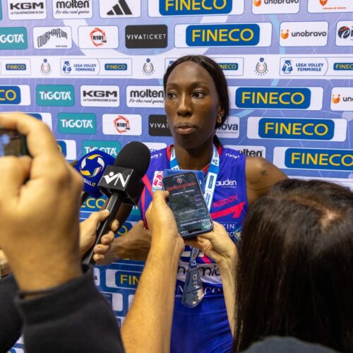 Note Reggio Emilia: ace 5, service error 17, ricezione 55%, attacco 54%, muri 6.