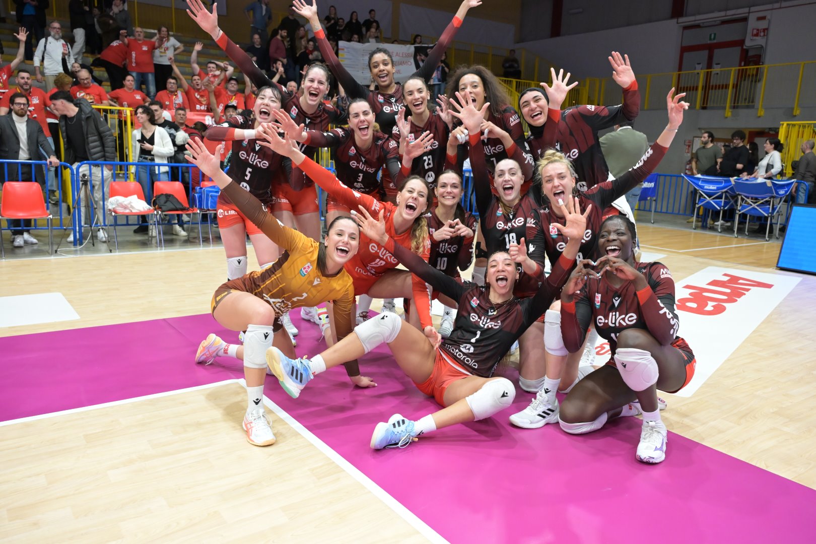 Fondamentale anche il contributo di Battista, 20 a referto, e Parra, 14, entrambe protagoniste nei frangenti più caldi. Il quinto set è stato un concentrato di emozioni: UYBA avanti 6-10, poi raggiunta e superata nel finale da una scatenata Kochurina, capace di trascinare San Giovanni in Marignano ai vantaggi. Nel testa a testa conclusivo, fatto di scambi lunghissimi e nervi d’acciaio, sono stati gli ultimi due punti firmati Battista e Parra a consegnare alle farfalle una vittoria pesantissima. Due punti che valgono il sorpasso su Firenze, l’ottavo posto e la partecipazione ai playoff scudetto. Al fischio finale è festa grande in campo tra squadra e Amici delle Farfalle, instancabili anche a Cervia nel loro sostegno: il simbolo perfetto di un gruppo che non ha mai smesso di crederci.
