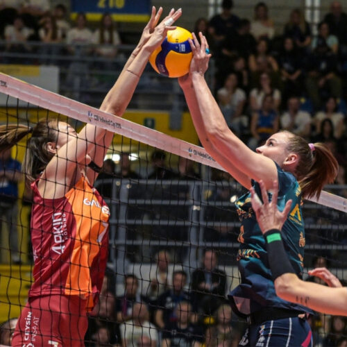 La CEV Challenge Cup femminile 2019 è della Saugella Monza. La prima squadra femminile del Consorzio Vero Volley scrive un’altra pagina della sua storia, salendo sul tetto d’Europa alla prima partecipazione ad una competizione continentale. Subito centro dunque per le monzesi, brave a firmare un determinato 3-1 sull’Aydin BBSK nella Finale di ritorno dopo il 3-0 rifilato alle turche nel confronto di andata. Storico trionfo europeo per la realtà presieduta dal presidente Alessandra Marzari, capace di riportare in Italia un trofeo che nella pallavolo rosa nazionale mancava dalla stagione 2008/2009 (l’ultima squadra a vincerlo era stata Jesi). Ortolani e compagne deliziano così la bolgia della Candy Arena di Monza con una prestazione grintosa. L’impatto delle padrone di casa nel primo set è travolgente: correlazione muro-difesa sono le armi, insieme al servizio efficace di Hancock, per indirizzare la gara subito sui binari giusti. Nel secondo parziale Aydin reagisce con decisione, trainata dalle giocate di Gonzalez Lopez e Brayelin Martinez, ma è Monza a percepire le vibrazioni della serata magica. Buijs e Begic iniziano a martellare forte nel terzo e quando le ospiti provano a farsi sotto, ci pensano le bordate di Ortolani e le accelerazioni di Adams e Melandri a scavare il solco decisivo e la conquista del decisivo terzo parziale. Con la vittoria della Challenge Cup in tasca, nel quarto la Saugella viaggia sul velluto: Buijs (MVP delle finali) chiude la gara a favore delle sue, regalando una scarica di emozioni ed il trofeo a Monza.