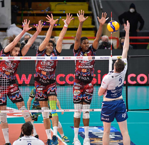La Sir Safety Conad vince ancora nel recupero e consolida il primo posto. Gas Sales Bluenergy pericolosa per due set