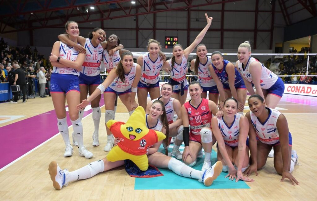 Ancora variazioni nel 6+1 per coach Santarelli, che parte senza Haak, Wolosz, Chirichella e Sillah, sostituite dall’MVP Adigwe, 15 punti a referto, dall’ottima Ewert, Lubian e Daalderop