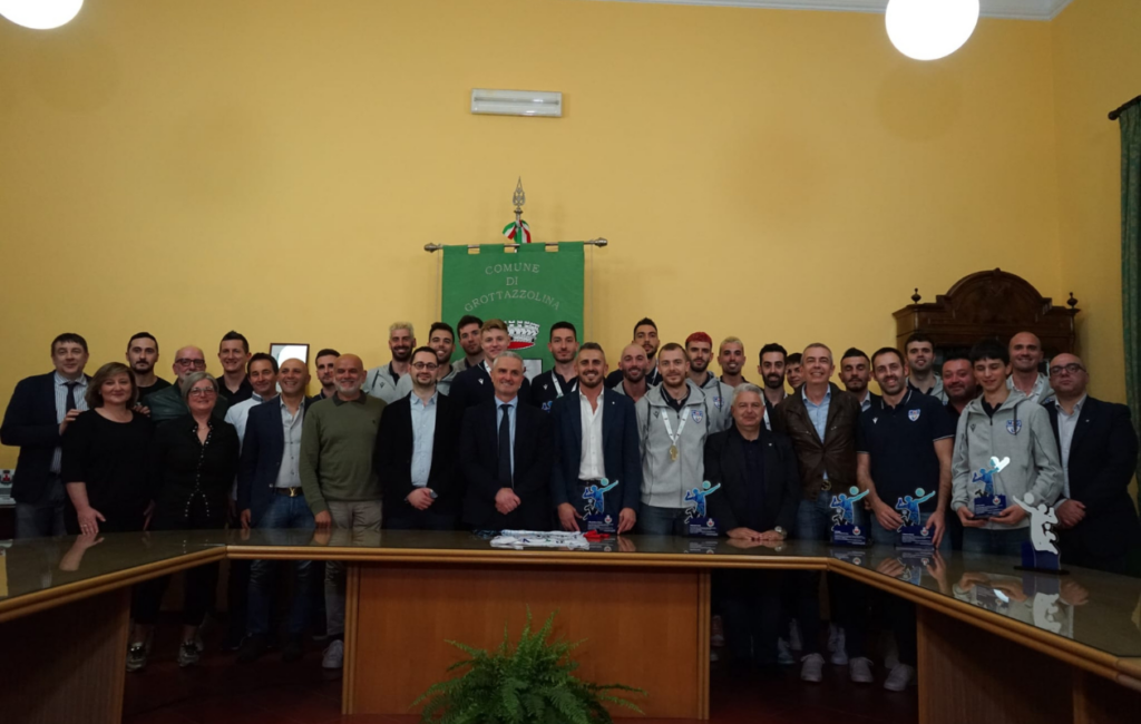 Nel corso del ricevimento ufficiale in municipio il sindaco di Grottazzolina ha consegnato un premio a ciascun giocatore, agli allenatori e alla società