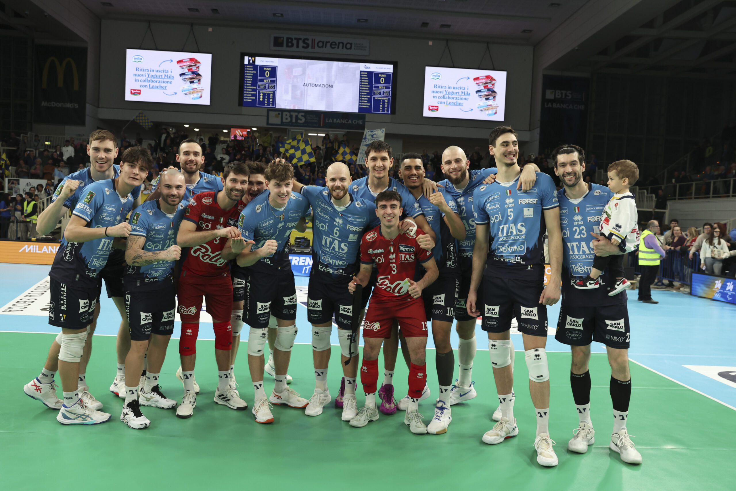 L’atmosfera della BTS Arena (oltre 3.800 spettatori) guida l’Itas Trentino al pronto ritorno alla vittoria. Dopo due sconfitte consecutive, la settimana dei derby si è infatti conclusa con un convincente successo casalingo della formazione Campione d’Italia, che di fronte ai propri appassionati tifosi ha superato l’Allianz Milano per 3-0 nella partita valevole per il diciassettesimo turno di SuperLega Credem Banca.
