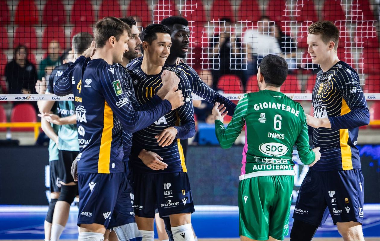 5° set – Al quinto, gli scaligeri spingono e con la pipe di Sani e il muro di Gironi va sul +4. Verona trova l’allungo decisivo e chiude i conti con l’ace di Gironi.
