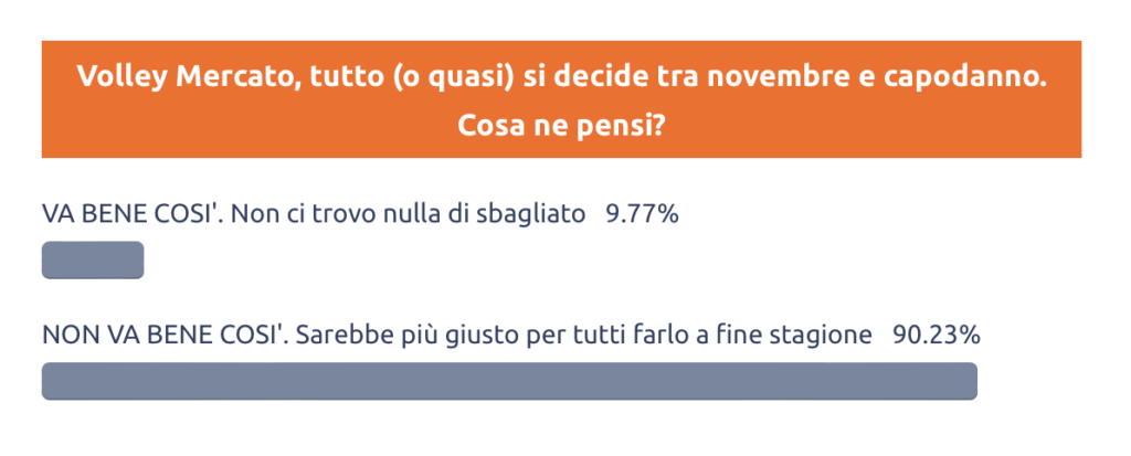 Ci piace il volley mercato? Da tempo avevamo il sentore che un fattore in particolare, quello legato ai tempi, rappresentasse la criticità più grande, ma era comunque difficile immaginare un sentiment così netto, in negativo, da parte dell’opinione pubblica, chiamiamola così.